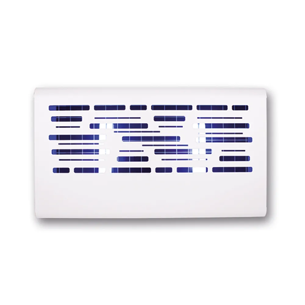 The fly killer with its energy efficient 40watt Fluorescent lamp attracts flying insects into its shell and they are then caught in the unit with the glue board situated behind the bulb.